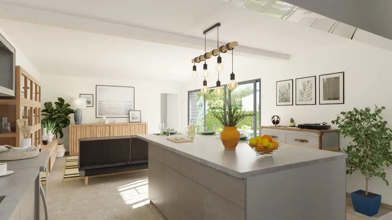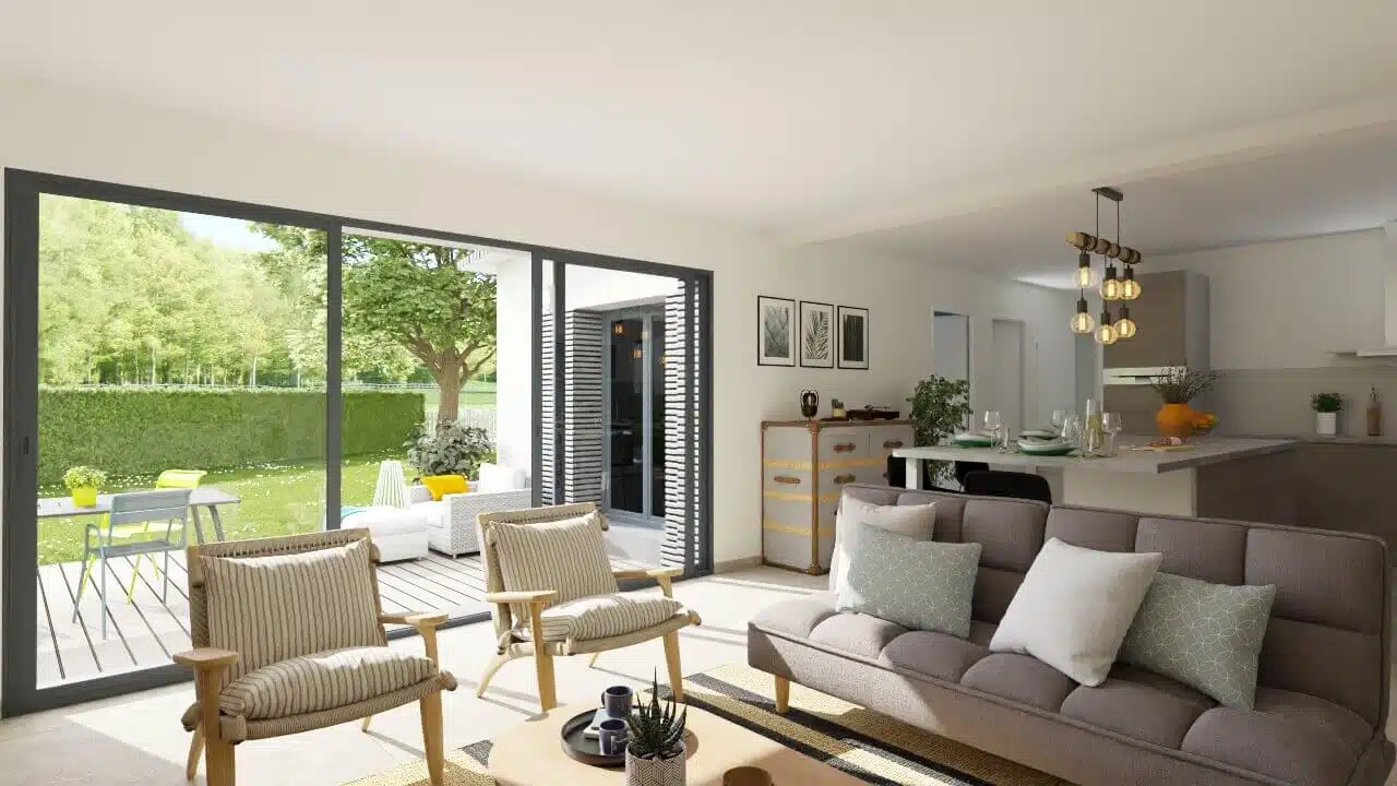 Villa contemporaine bioclimatique de plain-pied, située dans quartier résidentiel de La Baule-Escoublac. La maison, proposition de plan sur-mesure, est composée de la façon suivante : Hall d'entrée avec vestiaire, pièce de vie avec cuisine ouverte sur le séjour, chambre parentale comprenant une salle d'eau privative, deux chambres enfant avec rangements, salle d'eau centrale, WC indépendant, garage intégré. Confort et bien être assuré, profitant d'une agréable exposition, la maison dispose d'une pompe à chaleur air-air réversible l'été pour rafraichir l'espace de vie, volets roulants motorisés, menuiseries ALU, maison connectée avec domotique simple d'utilisation. Edifiée sur terrain de de moins de 500 m², surface raisonnable à entretenir.Terrain sélectionné auprès de notre partenaire foncier, sous réserve de disponibilité. Prix hors frais d'acte notarié.Contrat de construction CCMI avec assurance Dommages Ouvrages inclus.