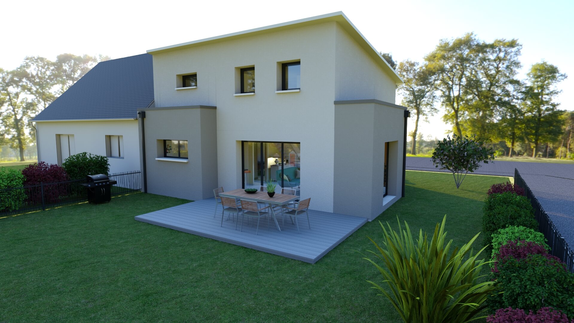 Proche Vilaine, à 500 mètres des commerces, en lotissement, sur une parcelle de terrain viabilisée d'une surface de 480 m², maison contemporaine bioclimatique, pompe à chaleur haute performance avec ballon d'eau chaude sanitaire intégré et plancher chauffant, comprenant une vaste pièce de vie 42 m² exposée Sud-est avec cuisine ouverte, suite parentale au rdc avec salle d'eau privative et douche italienne, wc. A l'étage, palier avec coin mezzanine, 2 chambres, salle de bains, wc. Idéal pour votre résidence principale.Conforme à la réglementation thermique en vigueur, profitez de votre nouvelle maison en maitrisant vos factures énergétiques grâce à l'utilisation d'énergie renouvelable ! Contacter Grégory POIDEVIN, agence Oceane Habitat PénestinTerrain sélectionné auprès de notre partenaire foncier, sous réserve de disponibilité. Prix hors frais d'acte notarié.Contrat de construction CCMI avec assurance Dommages Ouvrages inclus.